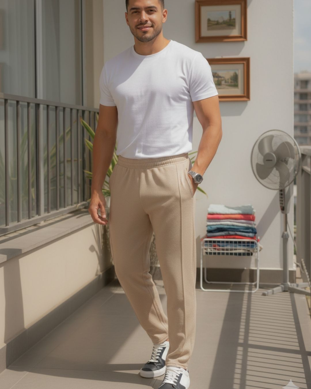 Tu que haces con un abanico en el balcón jajajaja